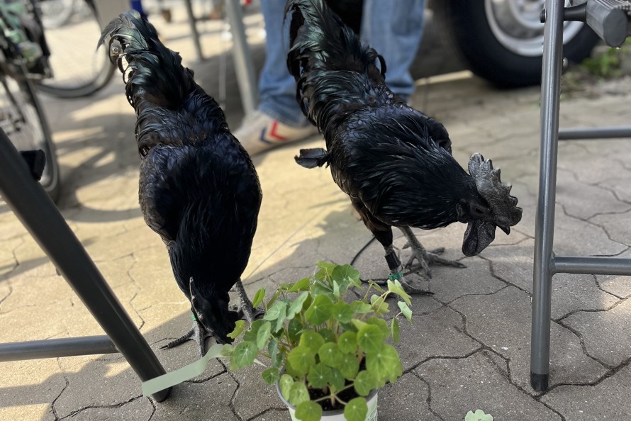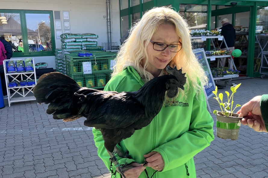 Der Cemani Hahn von Nutztierheilpraktikerin Nina Kempf hat sich persönlich vom brasilianischen Blumenkohl überzeugt…..